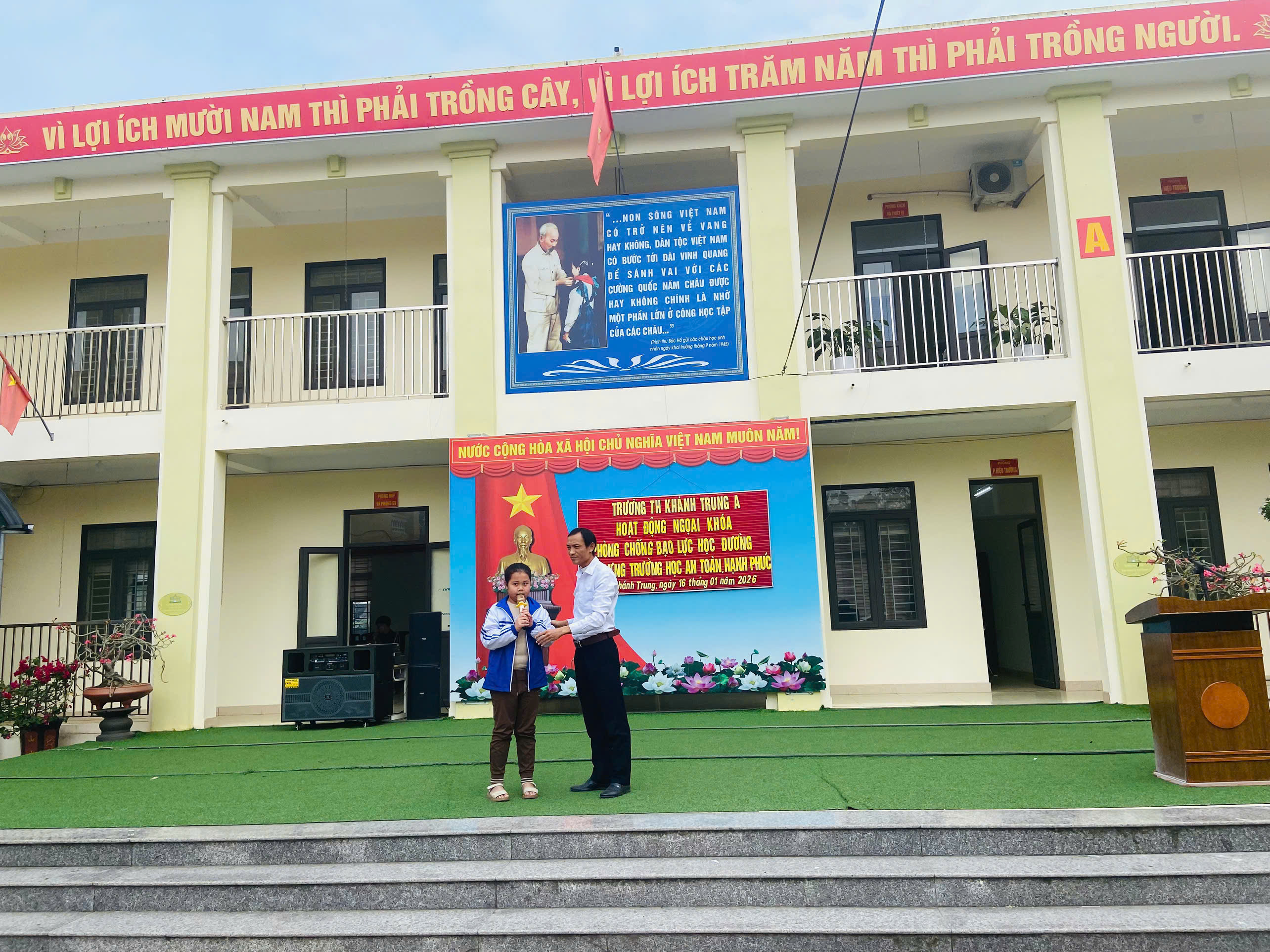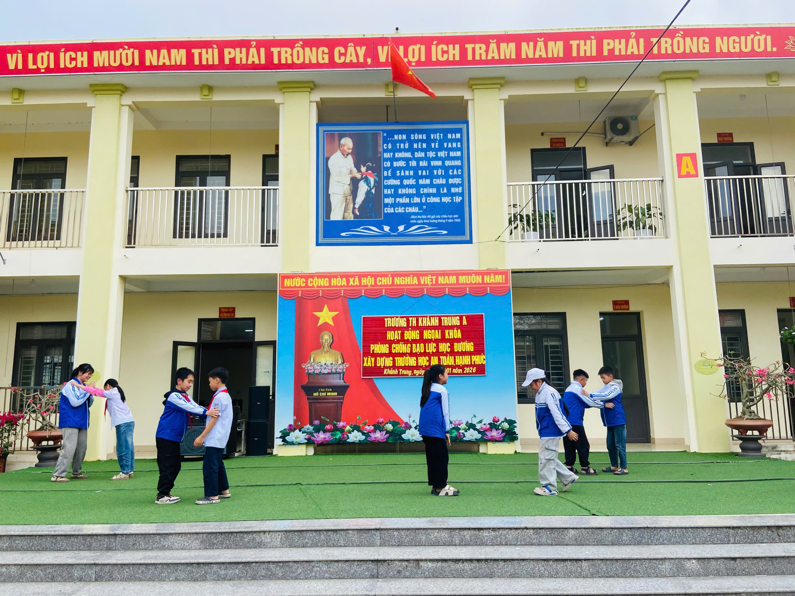 Nhằm nâng cao nhận thức cho học sinh về phòng chống bạo lực học đường, đồng thời xây dựng môi trường giáo dục an toàn, lành mạnh và hạnh phúc, sáng ngày 16/01/2026, trường Tiểu học Khánh Trung A đã tổ chức hoạt động ngoại khóa với chủ đề “ Phòng chống bạo lực học đường – Xây dựng trường học an toàn, hạnh phúc”.