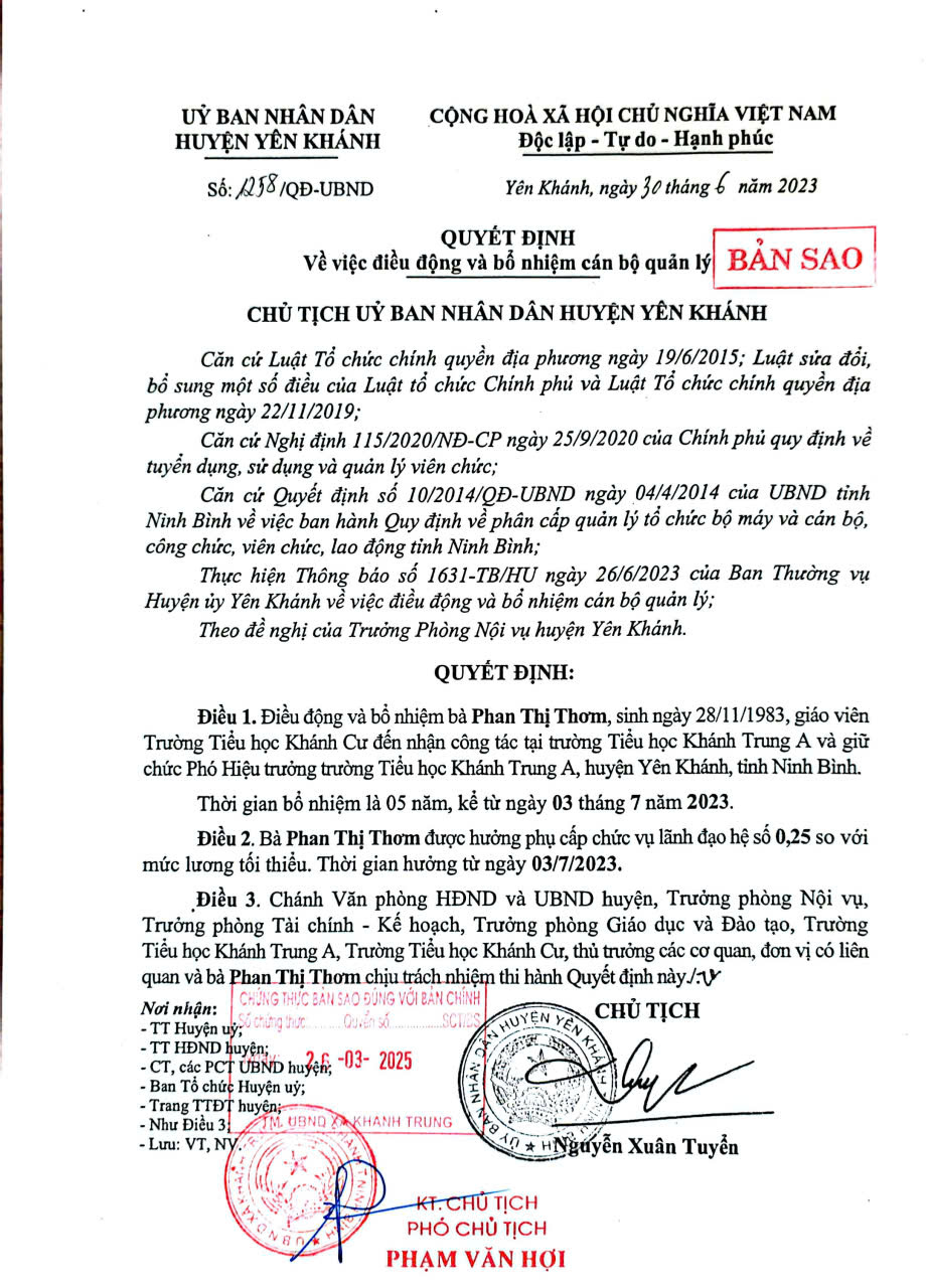QĐ điều động và bổ nhiệm Cán bộ quản lý